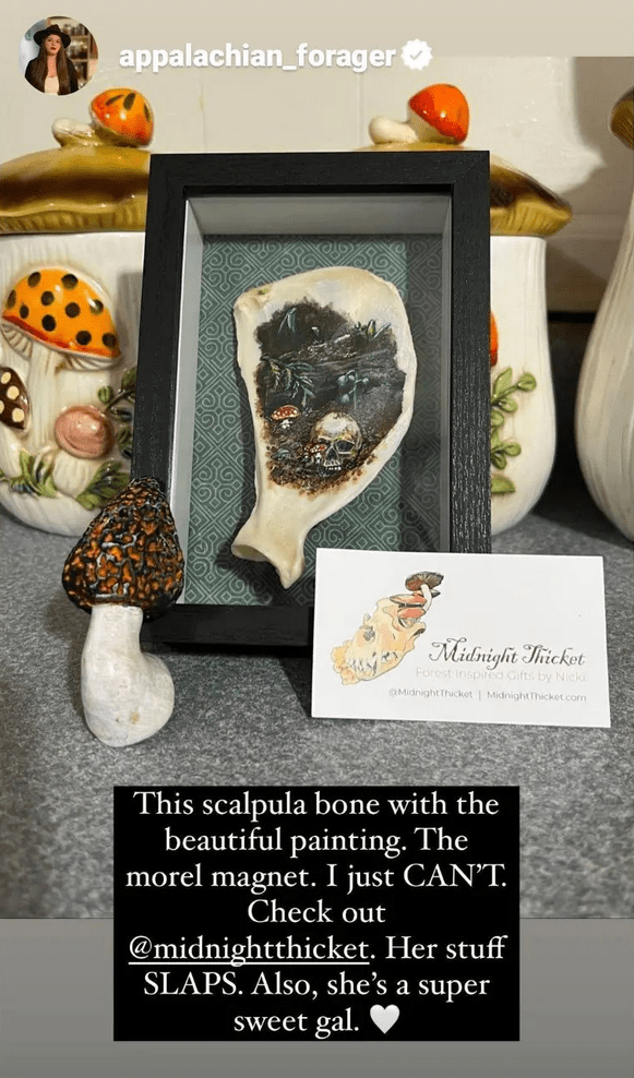 Hi! I’m Nicki of Midnight Thicket. I make handmade, forest inspired gifts with the goal of connecting with my RVA community and encouraging others to forage, camp, and explore. I am mostly known for my lifelike mushroom refrigerator magnets. You can find them and other pieces of my functional artwork in my webshop or you can find me at vendor markets all around Richmond, Virginia. Thank you so much for stopping by!